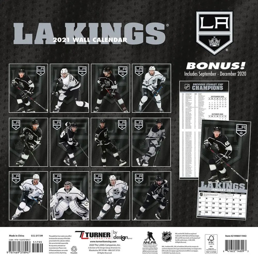 Turner 1 Sport Los Angeles Kings 2019 12X12 Team Wall Calendar Office Wall Calendar (19998011943